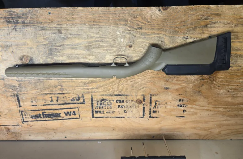 Ruger american rimfire factory stock. No action screws, stock only. Like new.