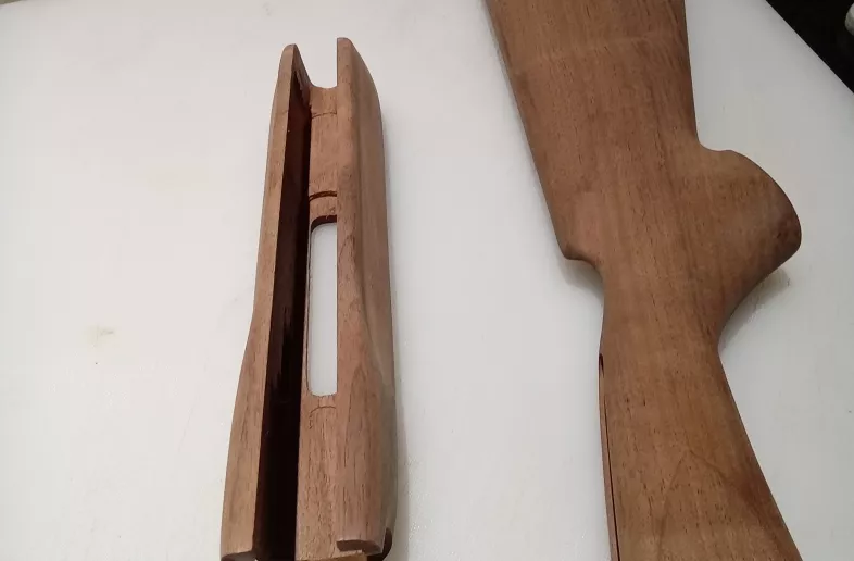 Stock and forend for a Remington 3200, unfinished, right hand palm swell. Needs to be final fitted. Walnut