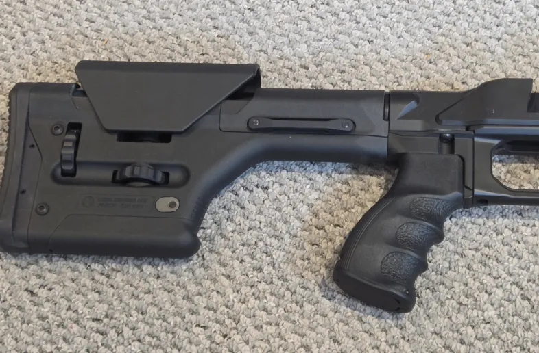 Comes with Magpul PRS stock (gen 2) and scope base for Rem 700 footprint.