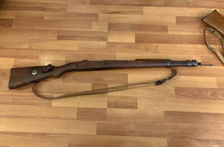 Non matching stock set for a k98k. Sling and cleaning rod is repro. Only thing missing to fit onto a sporterized Mauser is the bottom metal piece. Looking for $50 or best offer