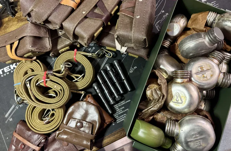 Authentic communist accessories! Russian SKS oil bottles, ammo pouches, oil pouches, tool kit, slings.