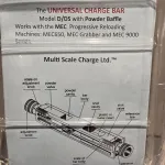 Multiscale Model D/DS universal charge bar with powder baffle. For shotshell reloaders.Works with MEC progressive reloading machines MEC650, MEC Grabber and MEC 9000 series. Eliminate the need for mutiple charge bars and powder bushings. New in box. Box was opened before I realized that I purchased the wrong one. I needed for a MEC 600 Jr. Which this will not work with.