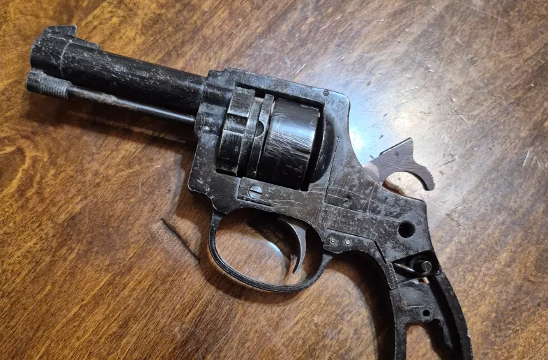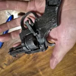 Made in west Germany gerstenberger eberein gussenstadt .380 blank. This is blank/starter pistol. There is no firing pin and the cylinder does not advance to next spot while pulling triger, but does turn freely. Ejector rod is stuck as well. it does single action and double action