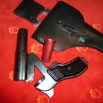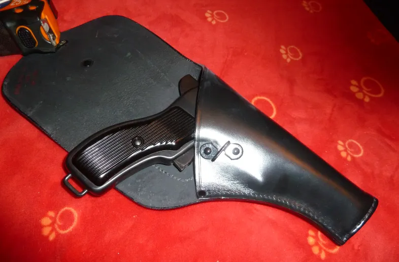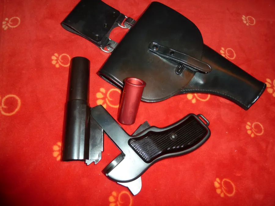 🔴 Polish Flare Gun 🔴 Circle ⑪ = 26.5mm, Blued Steel with leather holster ............►FREE SHIPPING◄