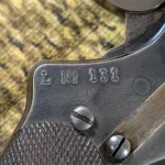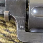 The revolver is all matching except for three parts. The cylinder is an unserialized replacement. The trigger guard and the side plate are also replacements in the 4200 SN# range.