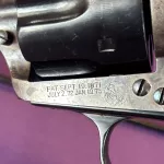 This is a antique Colt model 1873 single action army a.k.a. “The Peacemaker”.  Colt has produced nearly 500000 model 1873’s from 1873 to present with this one being made in 1897.  This has a barrel length of 4-3/4” with a strong barrel address and 41 COLT marked on the left side of the barrel. This is a 6 shot revolver that is chambered in .41 Colt. The patent dates on the frame are sharp. This gun retains around 98% of reapplied finish. The grips are in perfect condition. The bore is bright with sharp rifling and a few very small minor spots of pitting. Mechanically in excellent condition with all 3 hammer notches working as they should creating a 4 click sound. Timing is perfect with a solid lock up. Matching serial numbers on all serialized parts.