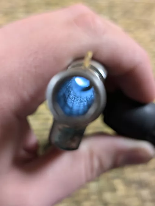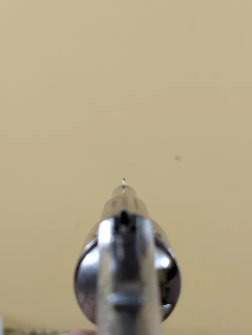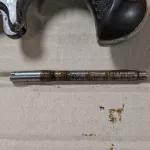 This revolver was fully restored from a pretty sorry state and now is mechanically is quite functional. It's fairly common on these revolvers to have the cylinder pin extensions completely mangled up with vice and plier marks all over the knurling because when these guns are fouled with black powder they can sometimes be difficult to disassemble. The other aspect too is to disassemble this particular gun the cylinder pin is actually a screw and you must unthread it before pulling it out. The tricky bit is it's a left-handed thread not a right-handed thread I suspect that threw someone for a loop in the old days and mangled the pin extension on this gun. As a result all of the knurling and marks have been polished off and now the cylinder pin extension is polished round.