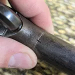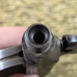 Overall the pistol is in pretty good condition except for a small hairline crack in the frame (pictured). There is some moderate pitting in the bore however it looks worse in the photo than it actually is. This is a smooth bore pistol and is breech loading so the pitting shouldn't make it difficult to load or shoot. This pistol was intended for point blank range shooting by virtue of the fact that has a stubby little bayonet to use in case you missed your target. The pistol mechanically fine. The trigger and lockwork are all in good working order and the spring loaded bayonet mechanism works perfectly. They are often broken because of the small springs and the daily carry type use of these firearms.