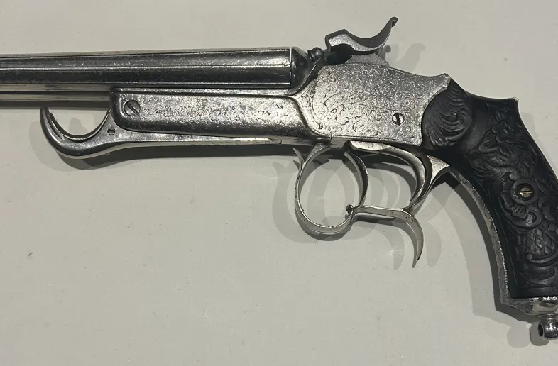 Chambered in .450 Adams ,there were howdah-style pistols chambered for .450 Adams, but they’re uncommon compared to the usual howdah calibers.