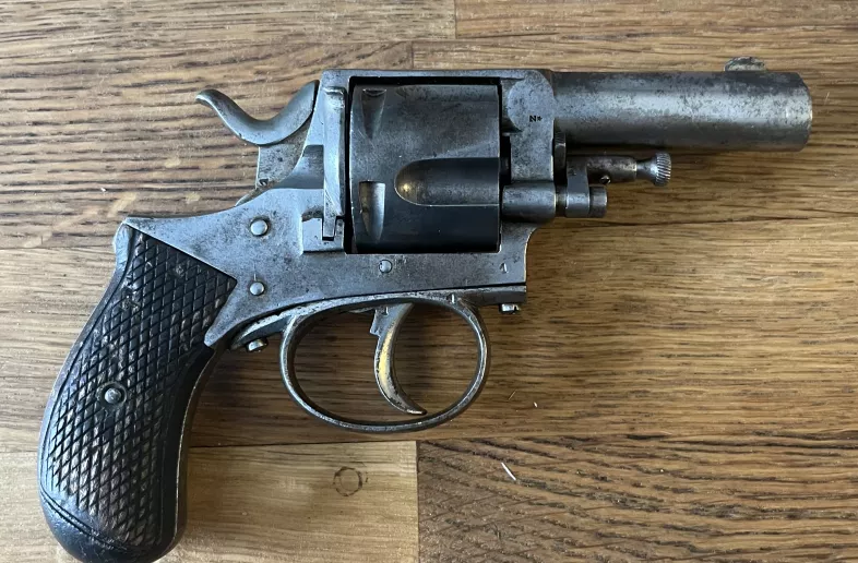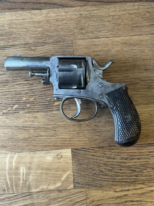 Antique status. Pre 1892 belgian stamped British bulldog in .44 Russian.