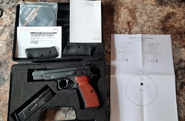 Cz 85 combat 9mm luger with wood grips and original, 2x magazines