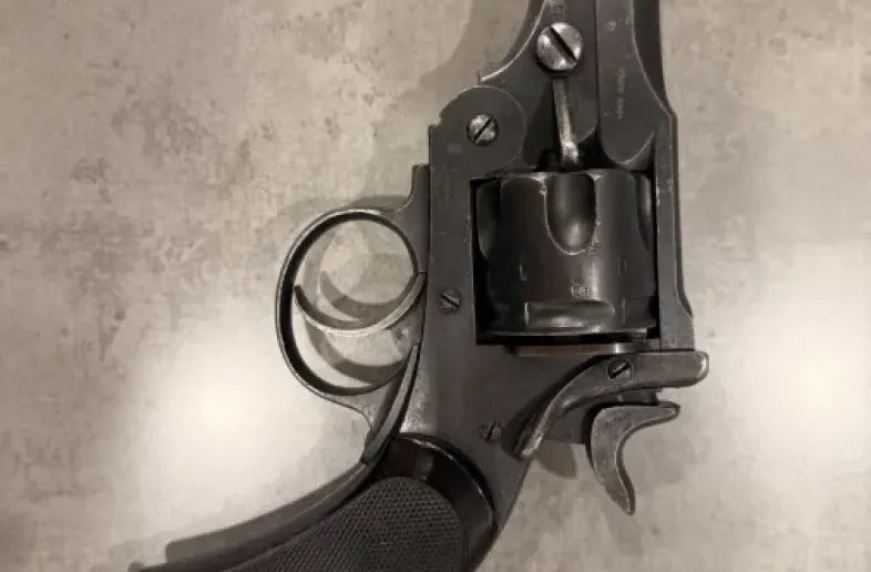 This revolver shows typical service wear but remains a solid, mechanically excellent example of a classic British military sidearm. A great piece for collectors or historical firearms enthusiasts.
