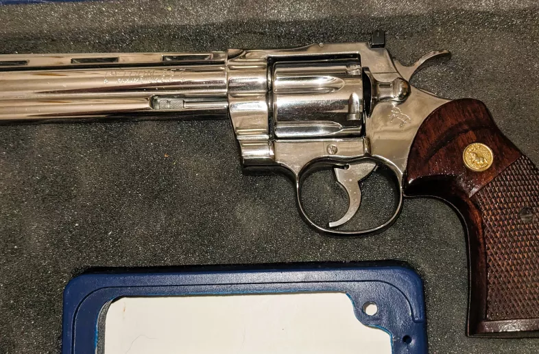 1987 Bright Stainless Colt Python. Factory Bright Stainless with Original Colt Historical Letter. 6" Barrel. Rare Python.