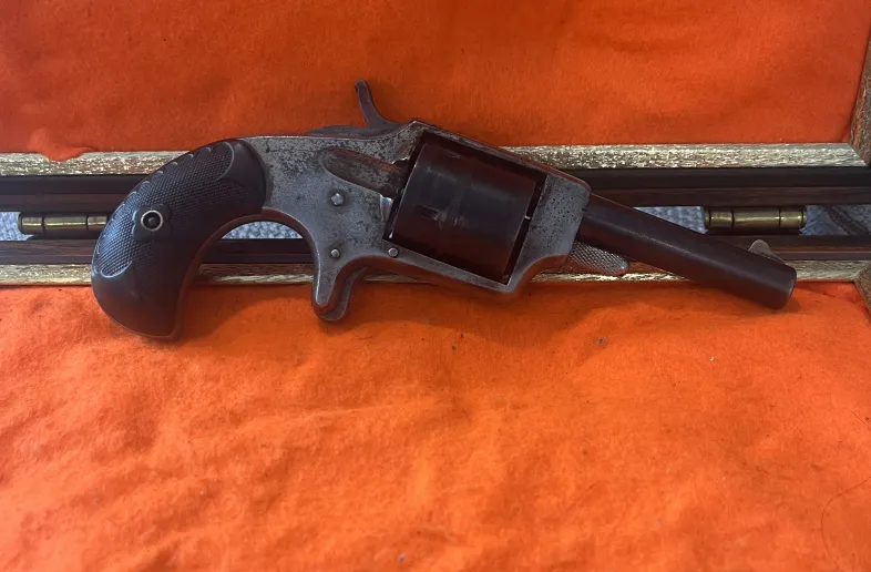 I have a very nice antique Dictator revolver chambered in .32 Rimfire, featuring a rare and attractive two-tone finishwith both bluing and nickel. This revolver operates well and is a solid example of a classic 19th-century pocket pistol.