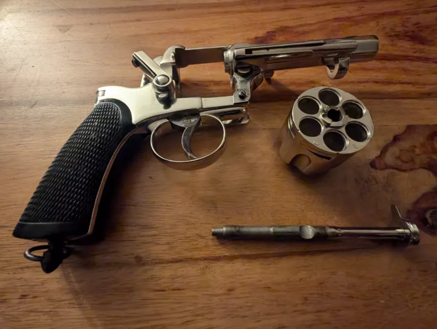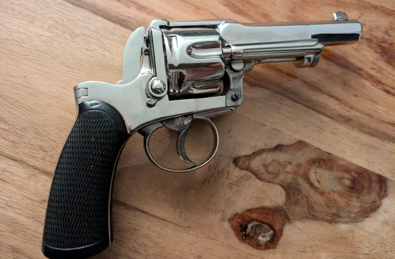 Fresh nickel, very good action with minimal play at lockup. Frosty bore with good rifling, no pits .450 Adams caliber.