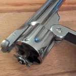 High Polish in the white. No original finish, bare metal. This gun has NO NICKEL, NO CHROME. It has simply been stripped and polished. Very low serial number.