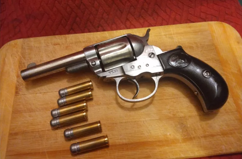 History & Background The M1877 was Colt's first double action revolver. Colt insisted on inventing their own double action mechanism, partly because there were numerous patents for DA revolvers in effect, which Colt did not want to infringe upon, but also because they trusted their chief engineers William Mason and C.B. Richards to come up with an original design. For this reason, the M1877's action is like a Swiss clock: it is somewhat convoluted and complicated, and it has earned the nickname "the gunsmith's favorite" over time. The gun did enjoy tremendous popularity however, and was manufactured for 32 years, even after Colt had improved the mechanism and simplified it considerably in later years. The M1877 was available in three calibers - .32, .38 and .41, and was originally called "Lightning". Later collectors coined the name "Rainmaker" for the .32 and "Thunderer" for the .41. In Canada, only the .41 caliber gun with serial numbers below 107,000 is considered an antique, as the others are either exempt calibers, or made after January 1, 1898.