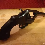 This one is in excellent condition. It bears about all of its original blue finish. The nitre blue on the trigger and hammer is well visible. The action is strong and accurate, and the cylinder indexes and locks properly. The bore of the 4 1/2 inch barrel is fine with good rifling. The markings are sharp and defined throughout. Extractor working as it should. The assembly numbers on the cylinder, crane and frame. The grips are good and undamaged, showing no wear.