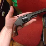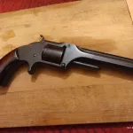 History & Background Horace Smith and Daniel Baird Wesson acquired Rollin White’s patent (1855) for the bored-through cylinder to manufacture what they originally called the No. 1 revolver in .22 rim fire. It proved to be a rather ineffective little pocket revolver but was nonetheless very popular with civilians as a personal protective weapon. In 1861, just as the civil war gained momentum, S&W decided that they needed a larger caliber revolver in order to be able to convince the buying public (many of them enlisted in the war) that their gun was a viable protective option and as a back-up gun in battle. The scaled-up design was duly named the No. 2 and was nicknamed the “Army”, as it was widely used by military personnel as a personal side arm. Smith & Wesson retained and defended the Rollin White patent aggressively throughout the civil war period, and until its expiry in 1870, and therefore the No. 2 “Army” would be the only American made cartridge revolver used during this conflict (although several “unlicensed” makers added their wares into the fray, such as Uhlinger, Pond and Moore). The model is called “Old Model” due to its frame shape – the square butt and octagonal barrel of the model 1 ½ First Issue, as compared to the bird’s head grip and round barrel of the Second Issue. There is no “New Model” Army. The "No. 2 Old Model" was a popular personal side arm of many officers in the Union forces during the American Civil War, and is also known as the "Army" model. It was first introduced in 1861, and made until about 1874. The "No. 2" refers to the frame size, "No. 1" having been the first, .22 caliber pocket revolver and the "No. 3"'s being the large-frame revolvers. The 1 1/2 was introduced after the number 2, and since it fits in between the no. 1 and no. 2, it was named the no. 1 1/2. The no. 2 was owned by such famous Americans as General George