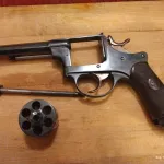 These Swiss revolvers are usually in extremely fine condition when sold on the antique market. This can be attributed to the following two facts: firstly, Switzerland has not been involved in a war since 1847, its last armed conflict, a short-lived civil war. The second reason for the fine condition is the Swiss government’s policy to allow soldiers leaving the service to keep their side arms. Given this opportunity, most soldiers were careful to maint