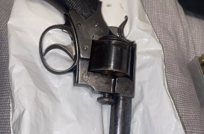 Working condition action locks up tight fires perfectly in double or single action have 26 rounds and a clip holster 60-70% original finish