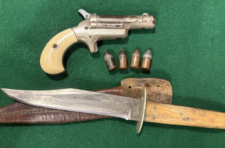 Colt “ Thuer “ 3rd model .41 RF . Derringer . Quite a history w these , I have a copied info sheet for your reference . All operational . Flaked nickel …. What I believe to be authentic ivory grips !! Not cracked or broken ! Neat collectable . Also Baron Von Oppen stamped in London office , which is of some note w collectors . Antique status .