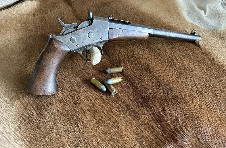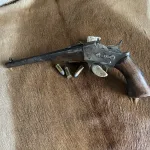 1901 target rolling block pistol 44 Smith & Wesson caliber, many of these were built on antique receivers from 1871 contract with the military inspector PS on the left side they are considered Antique as they were built on antique frames. This pistol functions very well with a strong hammer spring and excellent trigger response. The boar has typical minor black powder pitting, but lots of strong visible shiny rifling. This pistol came with adjustable front and rear sites as seen in the pictures. RCMP, FRT document included.