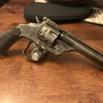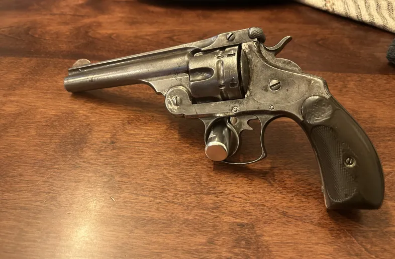 Antique Smith & Wesson double action 44 Russian caliber. This revolver has a 5 inch barrel. The bore has minor black powder pitting, but lots of strong visible rifling the action functions as designed both in single and double action with excellent timing and lock up. this is an revolver and you do not require a PAL to purchase it