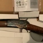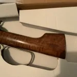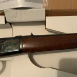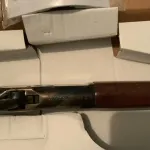 A beautiful New and unfired 1892 model Chiappa mares leg in the venerable .45 LC. (Only factory test fired). The case coloring and wood grain are simply stunning,and the fit and finish are exceptional. This has a 9” round barrel and an over all length of 21”, making it a restricted handgun by RCMP regulations. Super smooth action and solid lock up as out of the factory condition.This has the good ole 1/2 cock safety feature .Also has a steel hatched butt plate. Fore stock has a couple of miniscule safe kisses on the underside,barely noticeable. This definitely is a handful and feels beautiful when carrying.