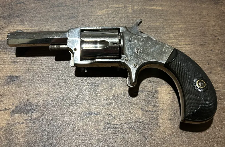 No.2 Single Action Revolver. This has a 2-1/2" octagon barrel and a 5 shot fluted cylinder chambered in .32 rimfire. This revolver has a spur trigger with birdhead grips. This revolver is in excellent condition with nearly all of its original finish. Mechanically in perfect condition with a strong and crisp action.