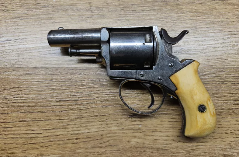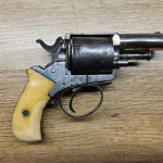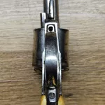 JP CLABROUGH & BROS BRITISH LION in 44 centerfire, 2 1/4" barrel, 5 shot. Sold as-is for repair. Missing the center pin so currently can not be properly mechanically tested. The ejection rod is intact and holding the cylinder in place. Original grips appear to be bone/ivory in good shape. Half hammer position works well, full hammer position will hold back only if trigger is pushed forward. Trigger return spring not working so trigger needs to be manually reset. Bore and cylinder walls show common wear. One trigger guard screw missing. $850 includes Free Shipping. Sold as-is for repair as a fixer upper. Antique status in Canada, no PAL required to purchase or own. Will include an RCMP FRT printout showing antique status in Canada. If you have any questions or need more pictures or video please feel free to ask. Gladly text me anytime at 1-204-392-8152.