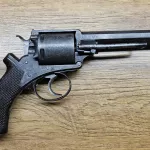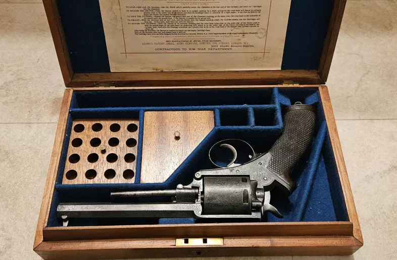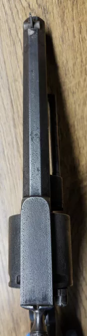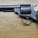 Adams Patent MK 2 Revolver in 450 Adams Caliber, 455 Webley fits well, 6" barrel, 6 shot. The Mk II saw extensive use by British military forces and civilians, gaining popularity and serving on both sides during the Indian Mutiny and other colonial wars. This great historical revolver is accompanied by what appears to be it's original lockable wooden box and yes the keyed lock still works! The action on this piece functions well in single and double action. Timing and lockup are good, about 2mm of common movement in lockup. Bore and cylinder walls rate good with some common wear. Original one piece checkered grip shows well, lanyard ring is removed. Exterior of the revolver has very ornate original engraving, the exterior shows scattered light pitting. Barrel address is present but worn. The loading gate spring is not present which allows the loading gate to move if tipped etc. The wooden storage box has a nice paper insert as well as a portable Lee 455 reloading kit and functional key to the box. The box has some repaired cracks on the top. A very desirable revolver/accessory package! Antique status in Canada, no PAL required to purchase or own. Will include an RCMP FRT printout showing antique status in Canada. $3395 includes Free Shipping and above mentioned accessories. If you have any questions or need more pictures or video please feel free to ask. Gladly text me anytime at 1-204-392-8152.