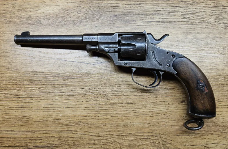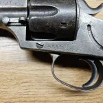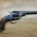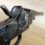 German Model 1879 Reichsrevolver, manufactured by S&S VCS CGH arms consortium in Suhl Germany, 7 1/8" barrel, 6 shot. Chambered in 11mm German Ordnance which is equivalent to the more common 44 Russian, 44 Russian is readily available and what most use in the Reichsrevolvers. This piece isn't a safe queen and is priced accordingly, but it's in excellent mechanical operational condition. Half and full cock work well. Timing and lockup are excellent and solid. Bore shows wear/pits along with surface scaling that should clean up better. Original grips show age shrinkage, there's a repair on left panel near center grommet, lanyard ring is intact. Cylinder pin and release screw are in good shape. Unique German military unit markings at bottom of the handle that should make for interesting research. Safety lever is not present which is not a concern as the Reichsrevolver safeties are not practical. Sideplate has 2 screw holes that are bored bit bigger with non original screws, loading gate is likely from a different 1879, it's spring is light and it doesn't close fully tight. Again not a safe queen, has great mechanics and priced accordingly. If you need brass, lead or dies please inquire. Antique status in Canada, no PAL required to purchase or own. Will include an RCMP FRT printout showing antique status in Canada. $1825 includes Free Shipping. If you have any questions or need more pictures or video please feel free to ask. Gladly text me anytime at 1-204-392-8152.