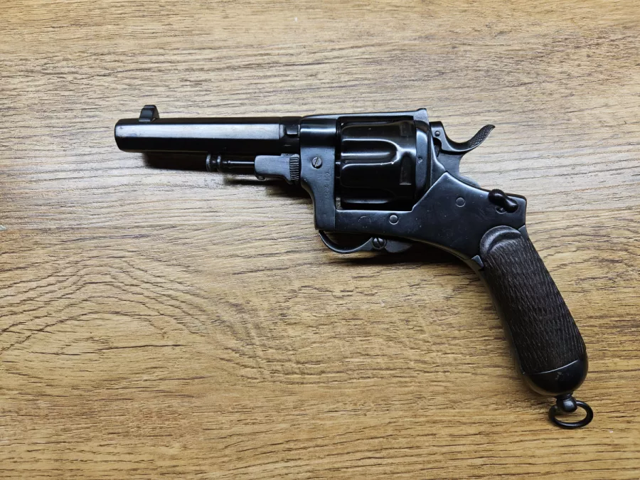 Italian 1889 Bodeo Revolver manufactured by Fabb D Armi in Brescia, Italy 1890. The cylinder accepts appropriately loaded 44 Russian handloads, 4 3/8" barrel, 6 shot. The exterior has been reblued at some point. The stow away trigger system works as designed and trigger drops down for use upon hammer pull. Action is finicky, hence the low price. Double action is often working well but at times it binds or doesn't cycle cylinder. In single action it cycles the cylinder fine but trigger pull often has a two stage effect where is needs 2 light pulls to release hammer. Sideplate locking screw can loosen at times and there is slight gap at bottom. There is play in lockup. Original grips are in good shape, lanyard ring is intact. Bore and cylinder walls rate good-very good. Interior components/springs appear in good shape so not sure why the issues. Again sold cheaper due to above noted issues. Antique status in Canada, no PAL required to purchase or own. Will include an RCMP FRT printout showing antique status in Canada. $1725 includes Free Shipping. If you have any questions or need more pictures or video please feel free to ask. Gladly text me anytime at 1-204-392-8152.