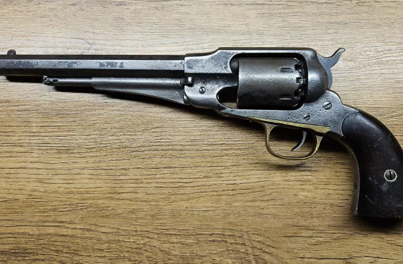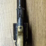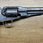 Remington 1858 Army New Model Revolver in 44 Percussion, 8" barrel, 6 shot. These Remington Army revolvers were one of the most common sidearms seen on Civil War battlefields and were often preferred over the Colt 44 Army Model as the Remington used a thick topstrap whereas the Colt did not. All 3 hammer clicks are present. Timing is good. Lockup has play and will need gunsmit attention prior to attempting to fire. Exterior has pitting and traces of a previous non original dark coating. Cylinder nipples are all present, they show expected wear. Bore shows common wear for a vintage revolver. Original grips are in good shape, left grip has the visible military inspector cartouche. If only this revolver could talk! Antique status in Canada, no PAL required to purchase or own. Will include an RCMP FRT printout showing antique status in Canada. $1795 includes Free Shipping. If you have any questions or need more pictures or video please feel free to ask. Gladly text me anytime at 1-204-392-8152.
