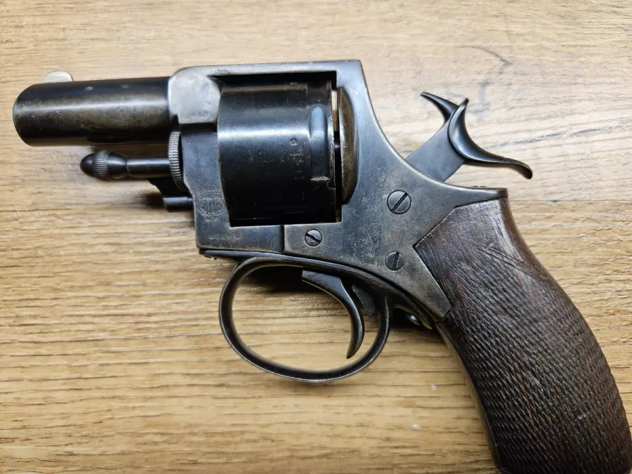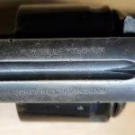 Webley MP Metropolitan Police Revolver. Chambered in 450/455, 455 Webley fits and functions well in this revolver, 2.5" barrel, 6 shot. These compact MP revolvers were popular among Police services throughout the British empire, this one has a Police 789 rack number on the right side, as well the iconic handcuffed hands emblem on the left side. The action on this piece functions excellent in single and double. Timing and lockup are great. Bore and cylinder walls rate good-very good for a vintage revolver. Original one piece checkered grip is in good shape and free of cracks, lanyard ring is intact. The tiny extractor rod screw is not present, as such the rod can be fully removed, rod stays in place well from natural pressure retention. If you need brass, lead or dies please inquire. Antique status in Canada, no PAL required to purchase or own. Will include an RCMP FRT printout showing antique status in Canada. $3150 includes Free Shipping. If you have any questions or need more pictures or video please feel free to ask. Gladly text me anytime at 1-204-392-8152.