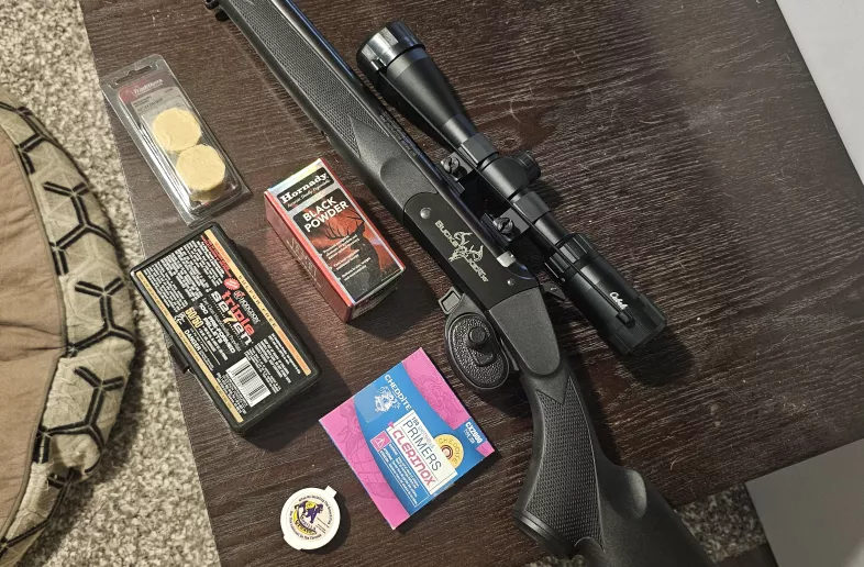 I bought a traditions muzzle loader 2 years ago. Never really got the opportunity to use it. Never fired, comes with primers, propellant pellets, patches, extra lubrication for breech plug and 50 cal round ball. All of which has never been used yet. Also has Cabela's muzzle loader scope. I think I paid around 650 for everything.