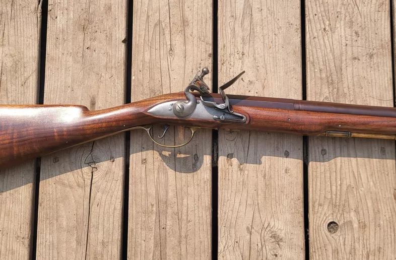 The barrel is an octagon to round 11 ga (.75 caliber) 14 1/8" long, made by Jack Garner of TVM. It has been browned.