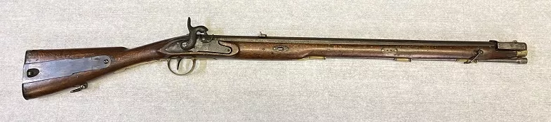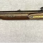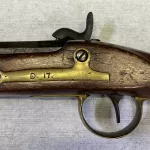 Up for sale is my Danish model M-1829 Jaeger carbine made in 1833. I believe this is a .69 Cal. but I have never shot this gun. It is numbers matching (246) with unit number D17 (Dragoons) on the barrel, brass side plate and the trigger guard. The ramrod, I've been told, is a reproduction, and it has the (more rare) patch box on the butt stock. The metal is pitted as expected with the use of black powder, but overall in decent condition for it's age.