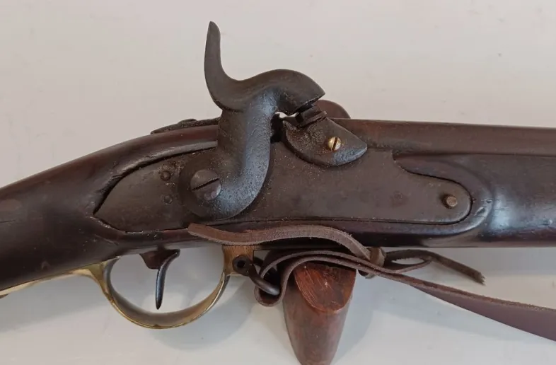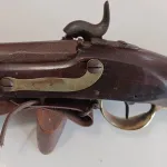 Research shows the following. The gun origins date to the Austrian Model 1798 Flintlock. Conversion to percussion happened in around 1842 by Henry Leman in Lancaster Pennsylvania for the Union side troops only, although these guns were shipped to both Union and Confederate armies it was the third most common long arm in the American Civil War! This gun’s furniture including barrel bands are all made of “Brass”. Interesting feature on the stock which has a reverse check rest which means it was used in the northern climates to accommodate heavy parkas.