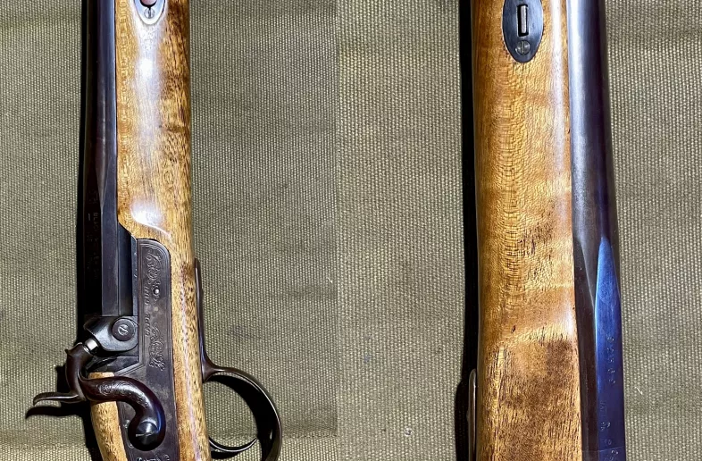 12 gauge Euro Arms Italian-made heavy breach for max loads. Cylinder bore percussion polished lock extra nipples mint barrel recheckered very nice wood as new 28 in barrel. Browned finished 750$