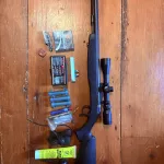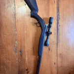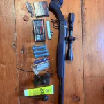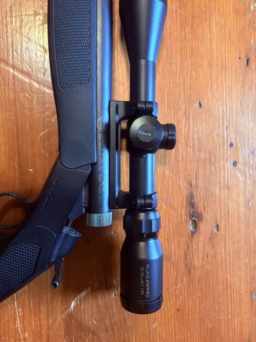 CVA Optima V2 50 Cal . Comes with 209 primers primers and holders,240 grain PowerPoint bullets,triple seven 50-50 powder, 20g bore snake,three easy loaders. end of the barrel has a bit of powder burn as you see in the picture .konuspro scope 3x9x40 I.R. I’ve had a few different muzzleloaders. This one seems to be the most accurate 150- 200 yards! no problem. I believe you can buy different barrels for this model in rifle caliber!