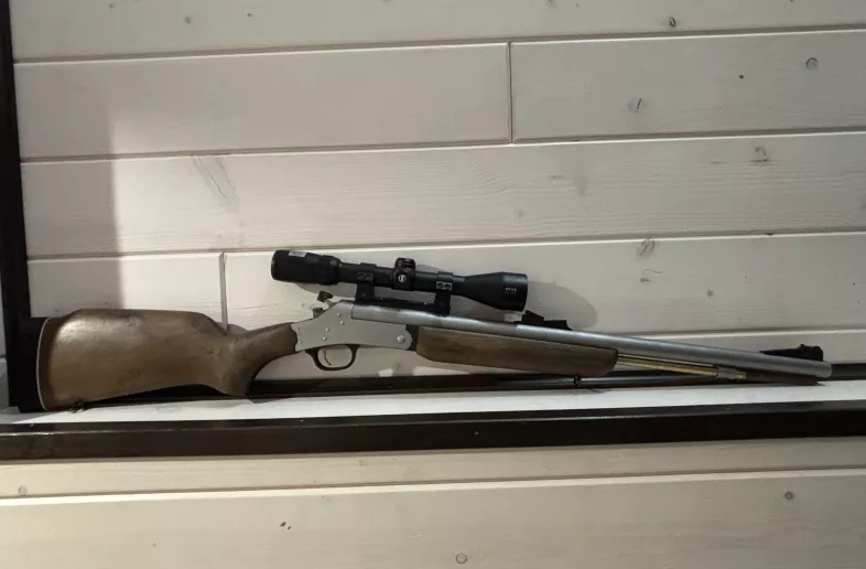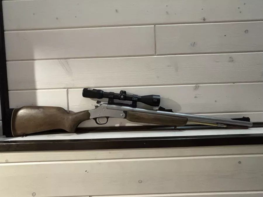 .50 cal. top button break open action, 23 in. barrel, matte stainless steel finish, wood stock and forearm, ventilated recoil pad, 38 in. OAL, 6.3 lbs.