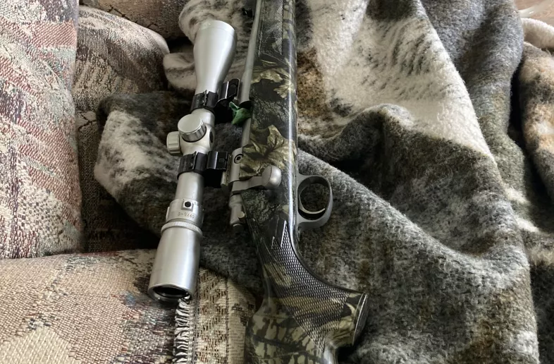 50 cal muzzle loader has upgraded shotgun primer system. Stainless steel gun and scope ,3x9x40mm. Composite stock. Very accurate and has had very limited use.