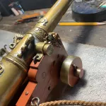 Two feet long diorama and 12 1/2 inches long bronze gun barrel of .64 calibre.