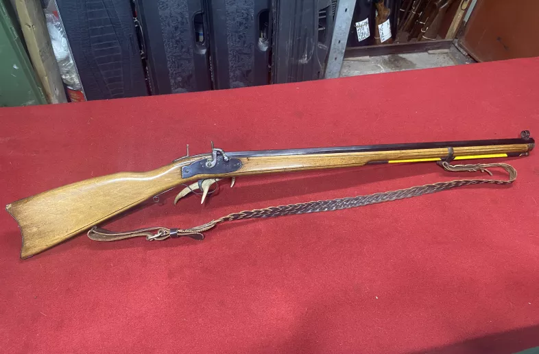 50 caliber percussion rifle with sling in nice shape. Home made sights, strong action spring and clean bore. Ready to go. Shipping available.