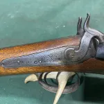 Antique status 12 gauge side by side percussion shotgun. Half cock safety, original ram rod, strong action springs, could use 1 new nipple but it functions fine the way it is and the nipples are both free and easily removed, barrel swedge is wood, May have been brass originally, nice engraving. No pal required to own or shoot. Shipping available.