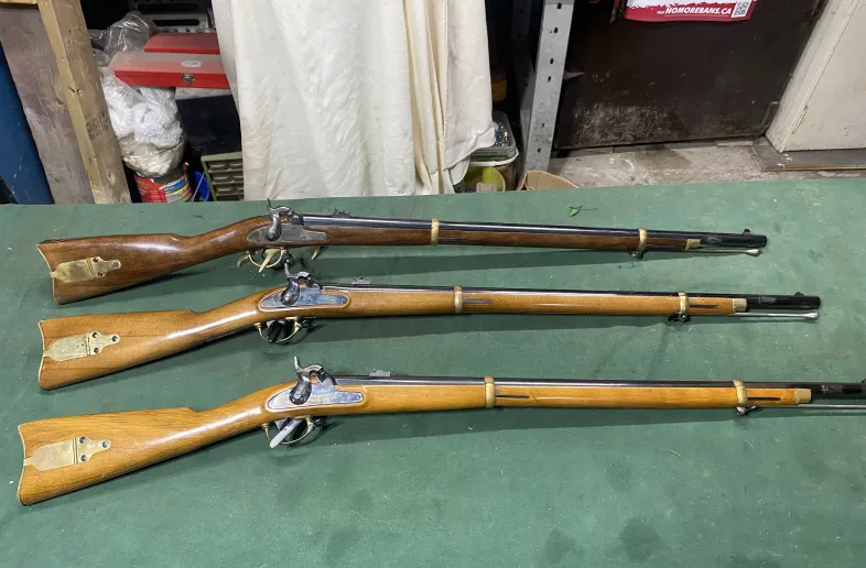 Part of a large muzzleloader collection. 3 pattern 58 muzzleloaders. All Italian and all in great shape with very little to no use. All have full brass trim, bayonet lugs, original cleaning rods, sling swivels, and functioning half cock safety. All are fully functioning. The top is an armi yager and the other two are Antonio Zoli and company. $750 each or make an offer on the set. Shipping is available.