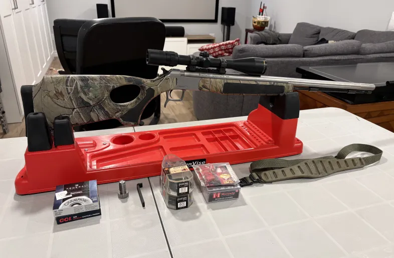 CVA Accura V2 50 Cal stainless version in thumbhole stock.