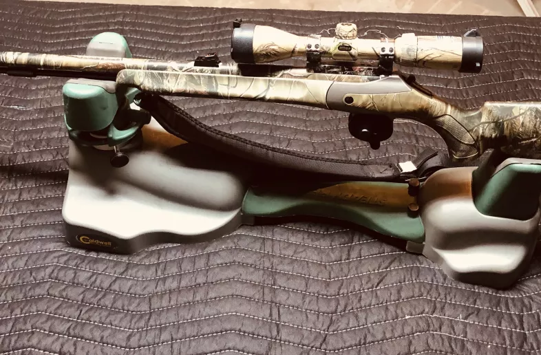 Verry clean TC triumph realtree 50 cal muzzleloader scooped by Nikon 3/9/40